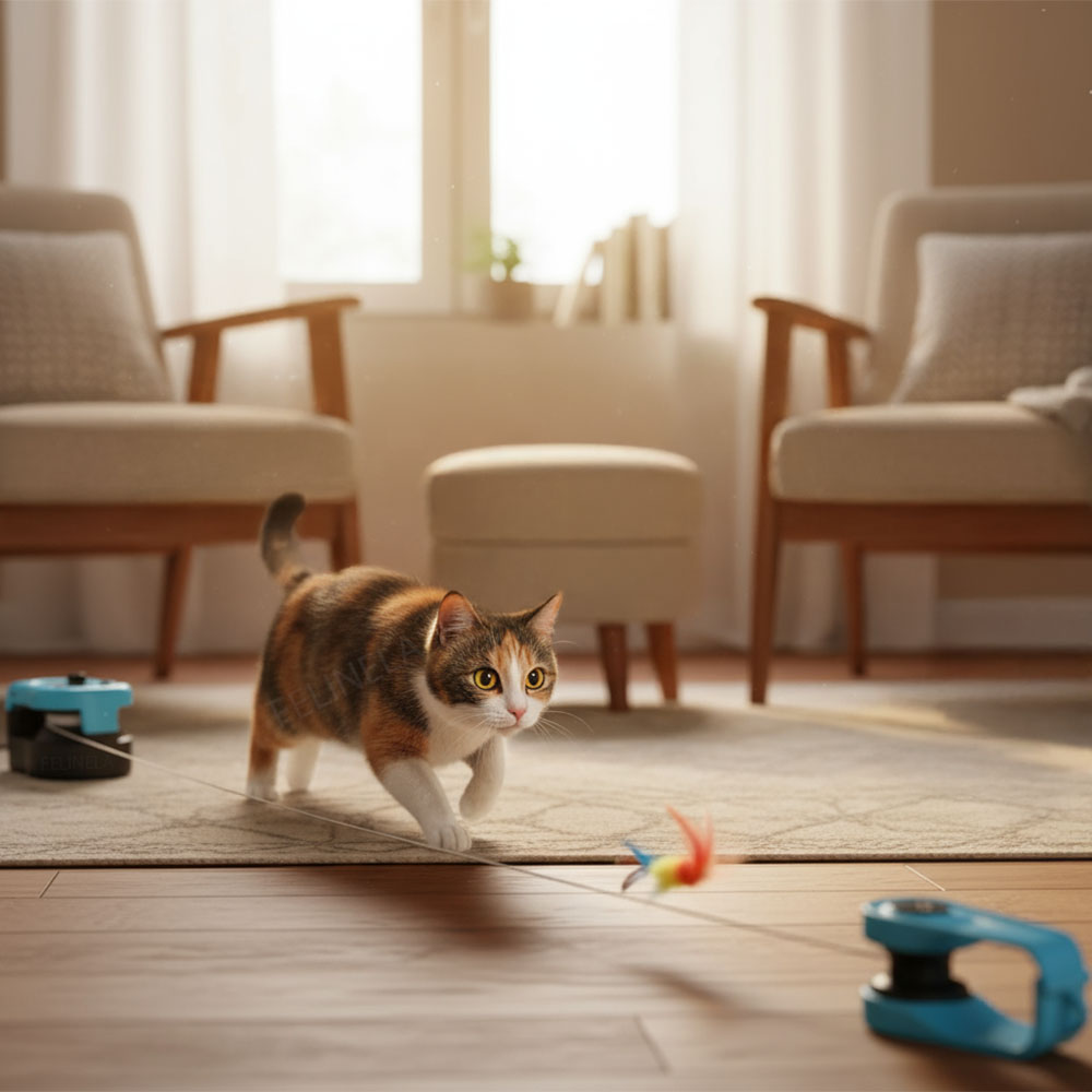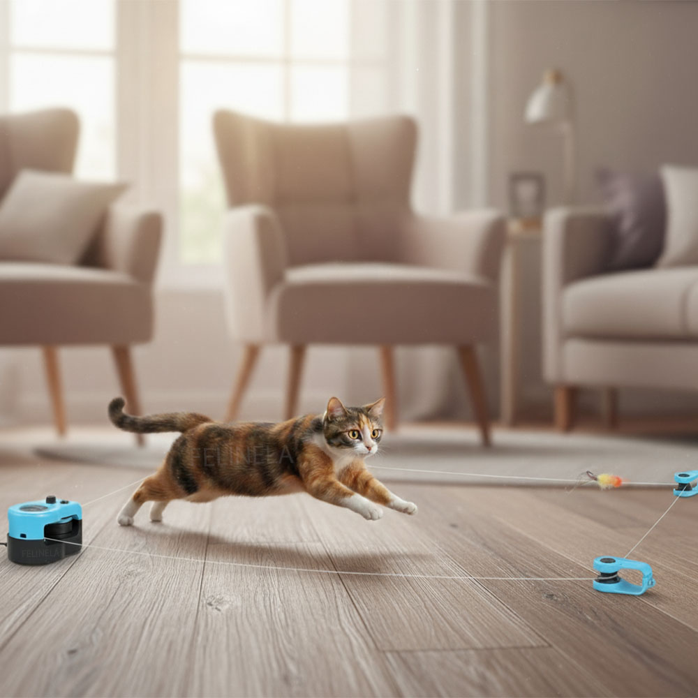 Aj bytová mačka má v sebe potrebu prenasledovať korisť – väčšina bežných hračiek sa však pohybuje stále rovnako, a preto sa rýchlo stanú predvídateľnými. Tento systém pracuje s pohybom, ktorý mení tempo a smer, čím sa viac približuje úniku koristi. V tom je rozdiel. Mačka musí reagovať, zapája sa fyzicky aj mentálne a hra pre ňu nie je len krátky impulz.