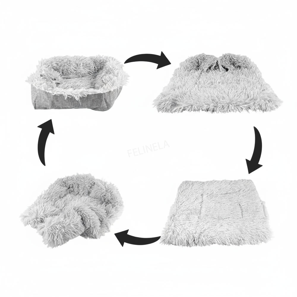 Každý majiteľ vie, že raz sa mačka schúli do klbka a inokedy sa rozťahuje po celej pohovke. Vďaka prepracovanej konštrukcii nastavíte Mäkučké Hniezdo 2v1 v priebehu sekúnd do jedného zo 4 režimov: Hniezdo, Pohovka, Loďka alebo Podložka. Jediný peliešok, ktorý sa prispôsobí nálade mačky – a vždy trafí do jej potrieb.