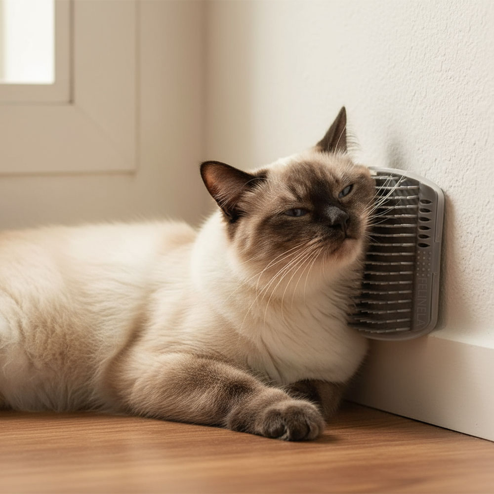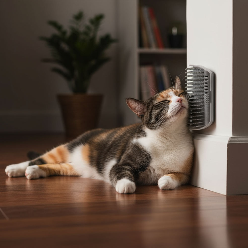 Keď zostane mačka sama, môže byť nepokojná. Otieranie o mäkké štetiny pôsobí ako jemná masáž – pomáha uvoľniť napätie. Štetiny fungujú podobne ako dotyk ruky – upokoja a spríjemnia chvíľu. Tento doplnok jej dá pocit istoty aj bez tvojej prítomnosti, takže ťa večer privíta pokojnejšia a pripravená na hru.