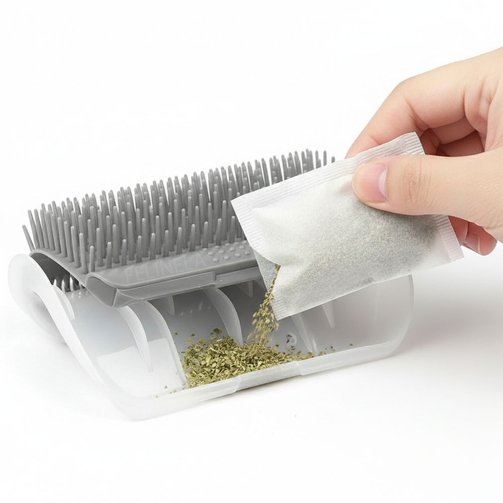 👉 Zabudovaná priehradka umožňuje vložiť mačaciu mätu.