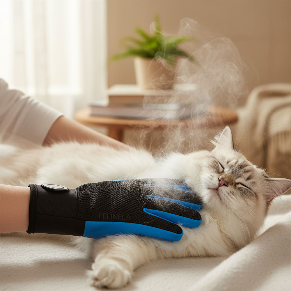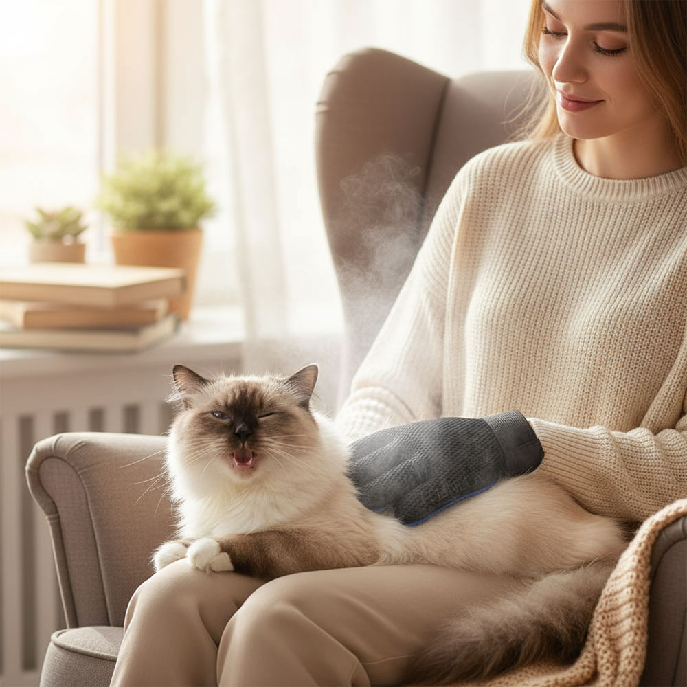 Vyčesávacia rukavica SoftMist pre mačky je elektrická rukavica, ktorá pri hladení vytvára jemnú chladnú hmlu. Zabudovaný rozprašovač pomáha zachytiť uvoľnené chlpy, obmedziť ich vírenie vo vzduchu a zároveň mierne zvlhčiť pokožku. Bez kúpeľa a bez naháňania po byte. Pár minút denne stačí na to, aby bola srsť upravenejšia a menej lietala po domácnosti.