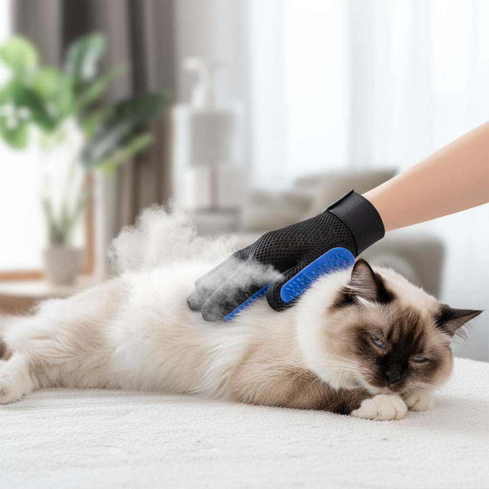 Bežné hladkanie môže mať aj praktický efekt. Rukavica kopíruje pohyb dlane, takže mačka reaguje pokojne. Silikónové koncovky jemne masírujú pokožku, podporujú prekrvenie a pomáhajú udržať srsť hladkú, jemná hmla ju mierne zvlhčí. Bez zbytočného tlaku a bez škrabancov, ktoré často sprevádzajú klasické česanie.